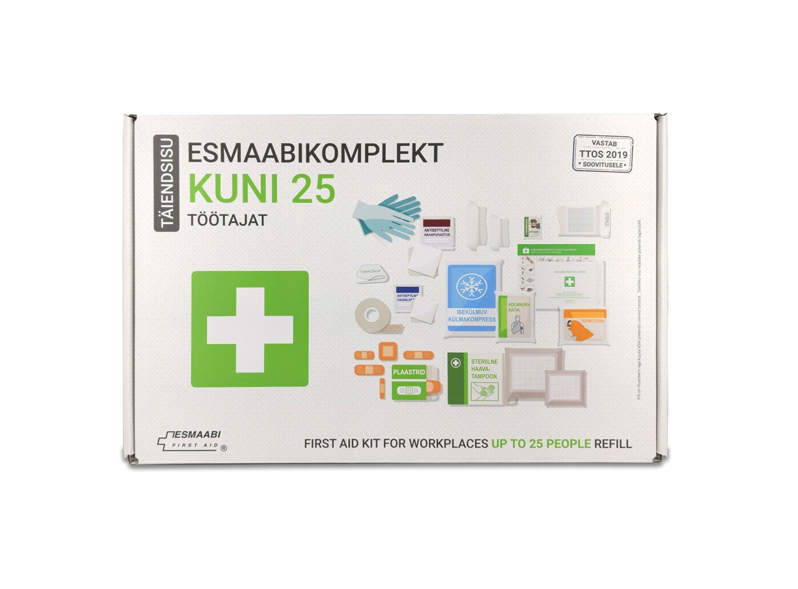 Esmaabikomplektid “kuni 25 inimest” sisaldavad järgmiseid tooteid: