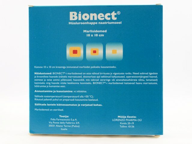 Preparaadi kirjeldus: Bionect-i marlisidemed on steriilsed, kreemiga immutatud marlisidemed, mille toimeaine on hüaluroonhape. Hüaluroonhape on naturaalne polüsahhariid (glükosaminoglükaan), mis jaotub paljude kudede ekstratsellulaarses keskkonnas. Tänu oma hüdrofiiilsetele omadustele tekitab hüaluroonhape niiske keskkonna ja lihtsustab rakkude migratsiooni. Bionect- i marlisidemed on steriliseeritud gammakiirte abil. Toodetakse erinevaid Bionect ravimvorme: kreem, marlisidemed, geel, pihusti ja vaht. Bionect-i marlisidemed sobivad suurte haavade raviks.