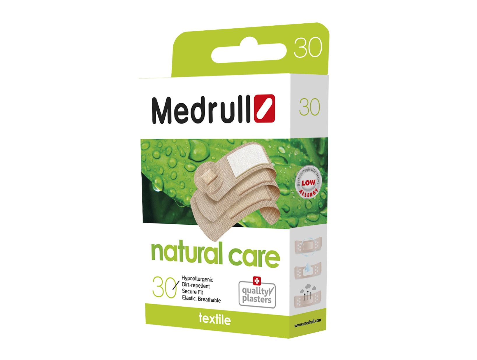 Medrull plaastrid Natural care N30 4 suurust Tekstiilmaterjalist plaastrid, hüpoallergeensed, mustust hülgavad, elastsed, hästi sobituvad, hingavad. Nahavärvi