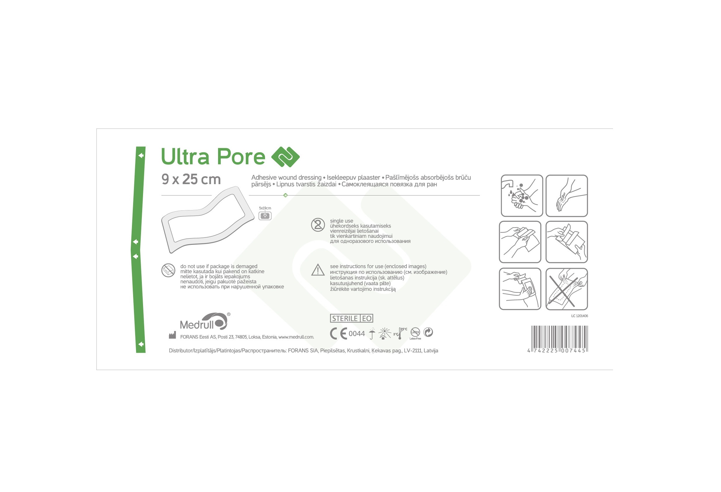Medrull Ultra Pore 9×25 cm Steriilne isekleepuv plaaster Ühekordseks kasutamiseks. Mitte kasutada kui pakend on katkine. Kasutusjuhend: vaata pilte pakendil