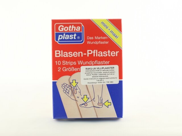 Kaitseplaastrid hõõrdumisvillidele. Kahes suuruses haavapadjaga plaastrid on valmistatud spetsiaalsest vahtmaterjalist.