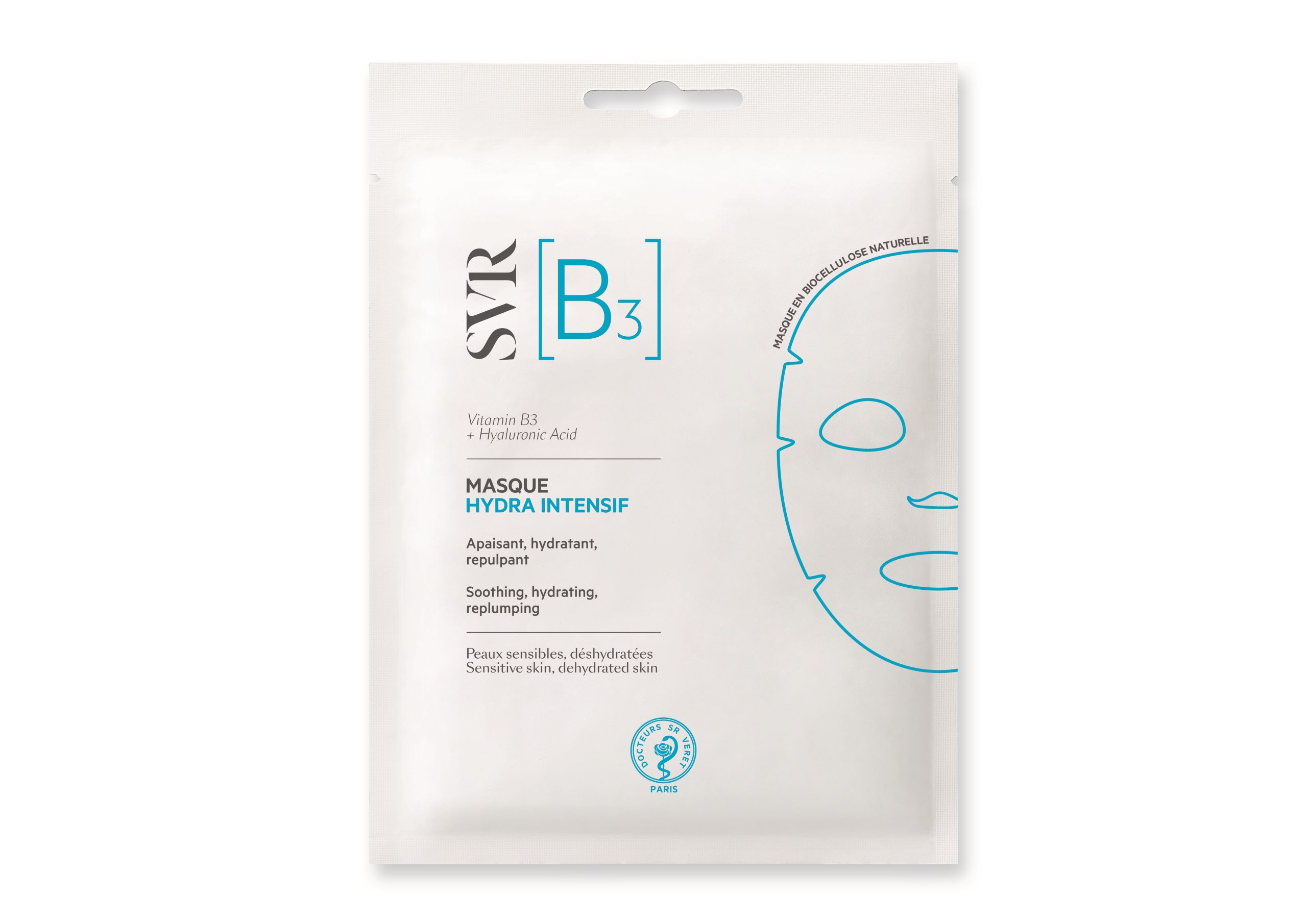 Hydra Intensif maski biotselluloosikiud on immutatud rikkalikult toimeainetega, toimib nagu teine nahk. Toodetud kookosvee kääritamisel, mask on 100% biolagunev, looduslik, väga vastupidav ja hea imendumisvõimega. SVR B3 Hydra intensiivses maskis on ainult 17 koostisainet, on lõhnavaba ning sobib igale nahatüübile, isegi kõige tundlikumale.