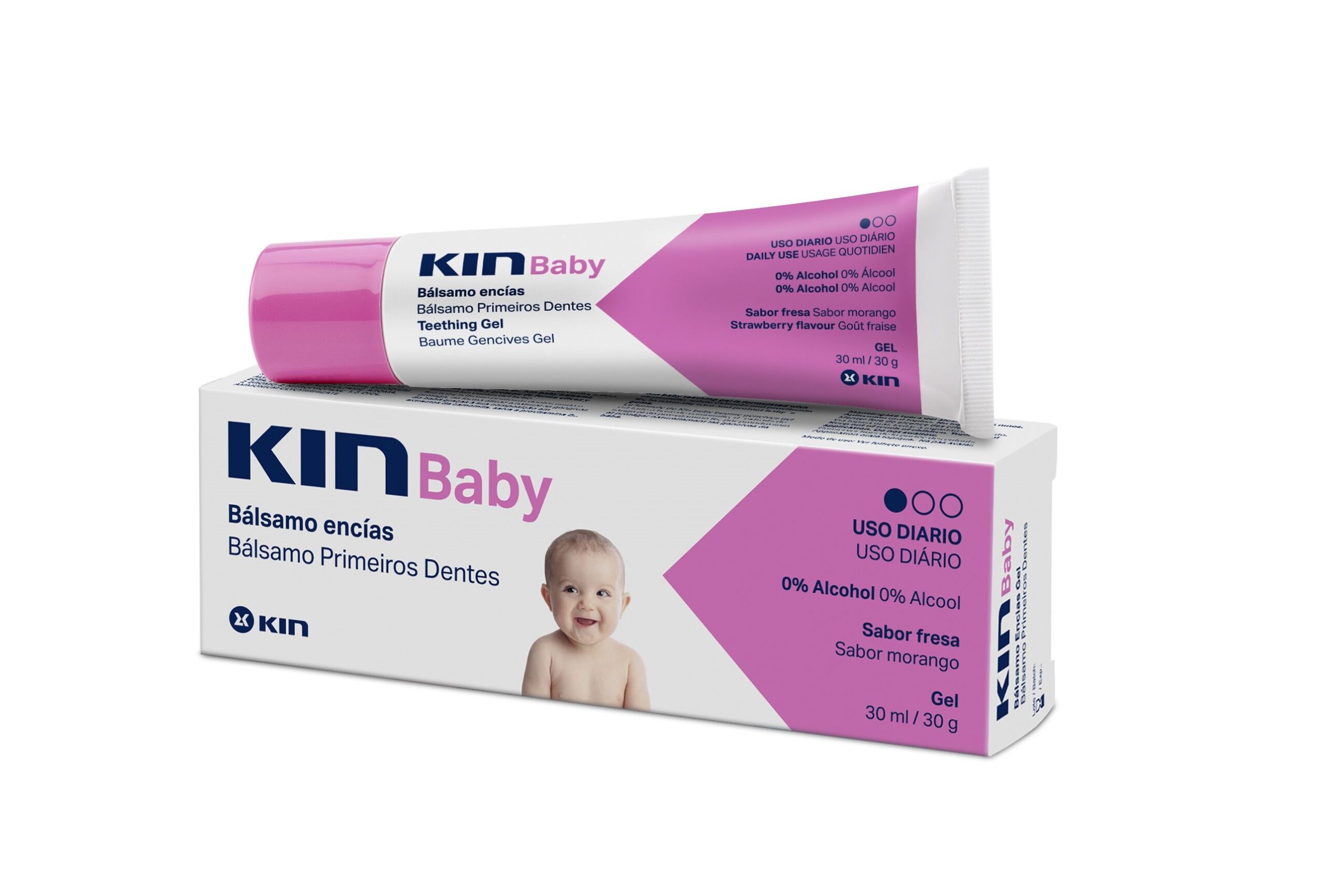 KIN Baby igemegeel imikutele alates 6 elukuust ja väikelastele kuni 3 eluaastani leevendab igemetes pinevustunnet ja hoolitseb hammaste lõikumise ajal nende eest loodusliku kummeli- ja salveiekstrakti ning provitamiin B5 toel. Geel on meeldiva maasika maitsega ja lapsed lasevad seda meelsasti igemetele kanda.