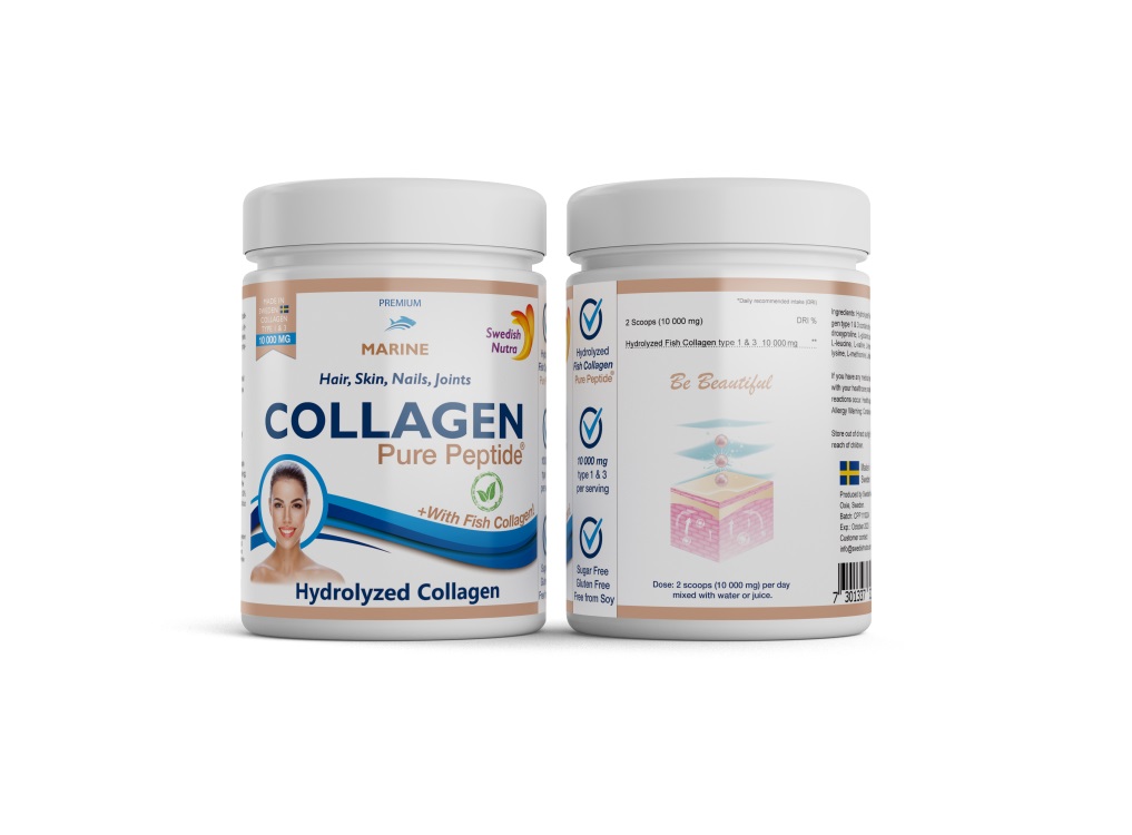 Koostisosad: puhas hüdrolüüsitud kala kollageen tüüp 1 & 3 (hüdrolüüsitud kollageen sisaldab aminohappeid: L-glütsiin, L-proliin, L-alaniin, L-hydroxyproline, L-glutamiinhape, L-arginiin, L-asparagiinhape, L-seriin, L-lüsiin, L-leutsiin, L-isoleutsiin, L-treoniin, L-fenüülalaniin, L-isoleutsiin, L-hydroxylysine, L-metioniin, L-histidiin, L-türosiin, L-tsüsteiin).