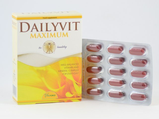 Dailyvit Maximum sobib igapäevaseks kasutamiseks, et varustada organismi vajalike lisavitamiinide ja mineraalainetega.