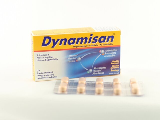 Koostis: ortofosforhappe kaltsiumisoolad, magusaine E421, magneesiumoksiid, L-arginiin monohüdrokloriid, L-askorbiinhape, L-glutamiin, ženšenni ekstrakt, emulgaator E471, pruun kuiv Sepisperse 3253 (stabilisaator (E464), emulgaator (E460), värvained: E171, E172), DL-alfa-tokoferüülatsetaat, nikotiinamiid, tsinkoksiid, stabilisaator E466, emulgaator E470b, Sepifilm LP 030 (stabilisaator E464, emulgaator E460, paakumisvastane aine E570), retinüülpalmitaat, kaltsium D-pantotenaat, mangaansulfaat (monohüdraat), emulgaator E551, stabilisaator E464, püridoksiinhüdrokloriid, vaskkarbonaat, kolekaltsiferool, stabilisaator E1201, tiamiinmononitraat, riboflaviin, tsüanokobalamiin, D-biotiin, kroom(III)kloriid, kaaliumjodiid, naatriummolübdaat (dihüdraat), naatriumselenaat.