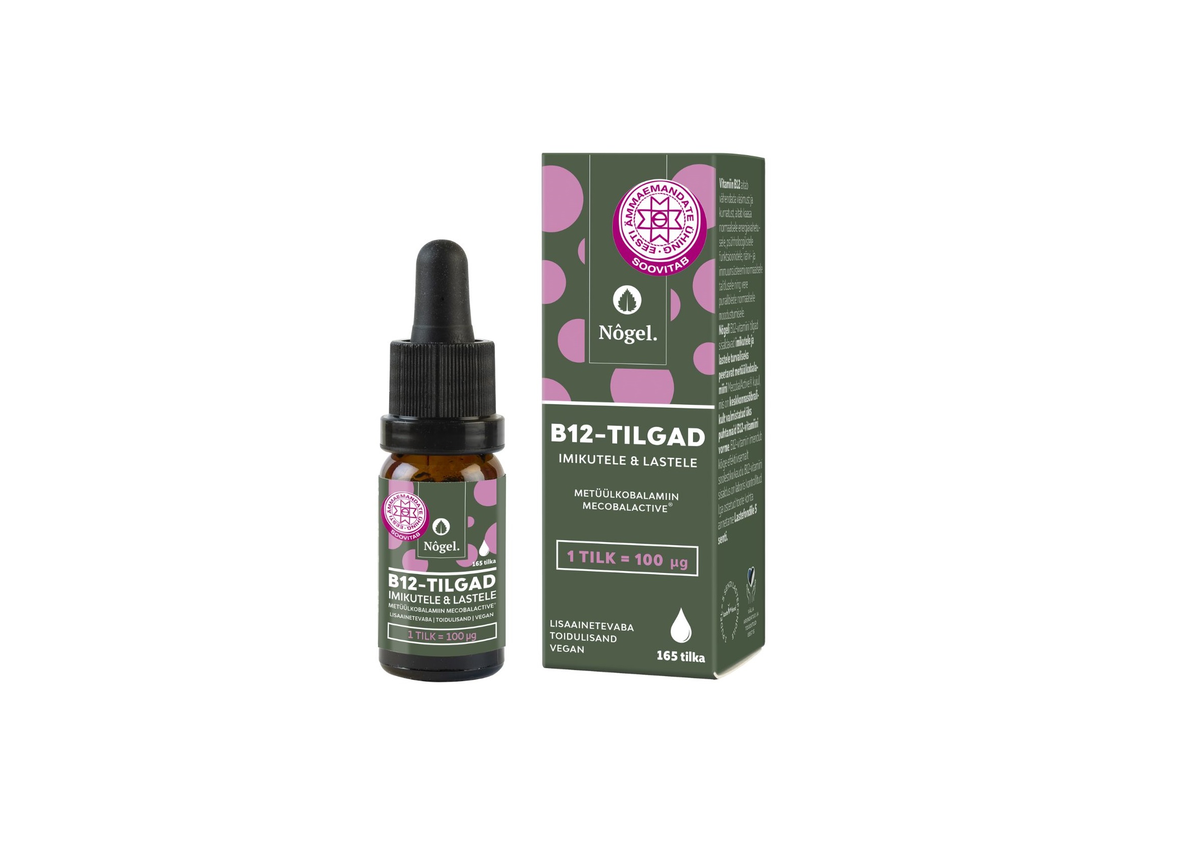 Nôgeli B12-vitamiini tilgad sisaldavad imikutele ja lastele turvaliseks peetavat metüülkobalamiini MecobalActive® kujul, mis on keskkonnasõbralikult valmistatud üks puhtamaid B12-vitamiini vorme.