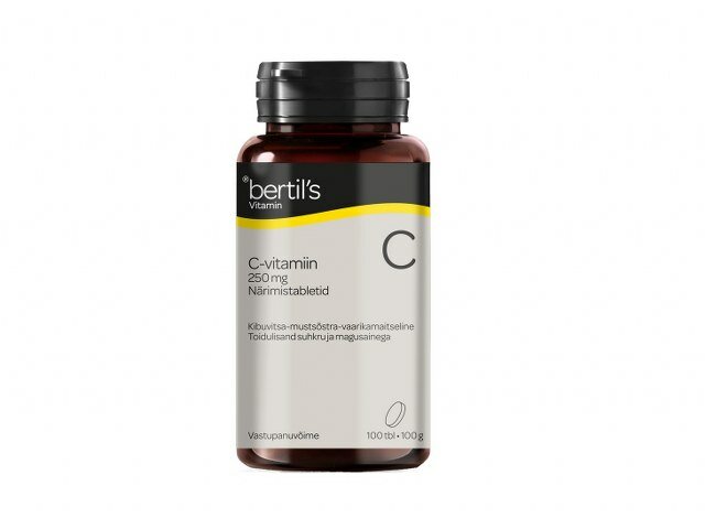 Bertil´s C-vitamiin on heamaitseline närimistablett tervele perele. Toode sisaldab C-vitamiini, mis aitab vähendada väsimust ja kurnatust ning aitab kaasa immuunsüsteemi normaalsele talitlusele.